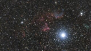そこで今回の三日月星雲はブロードバンドで撮影したのですが、赤い星雲をしっかり出しつつ星の輝きも表現することができました。