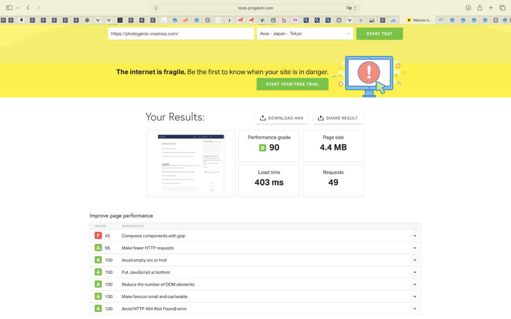 ページサイズが4.4MBと、非常に重いことがわかりますね。