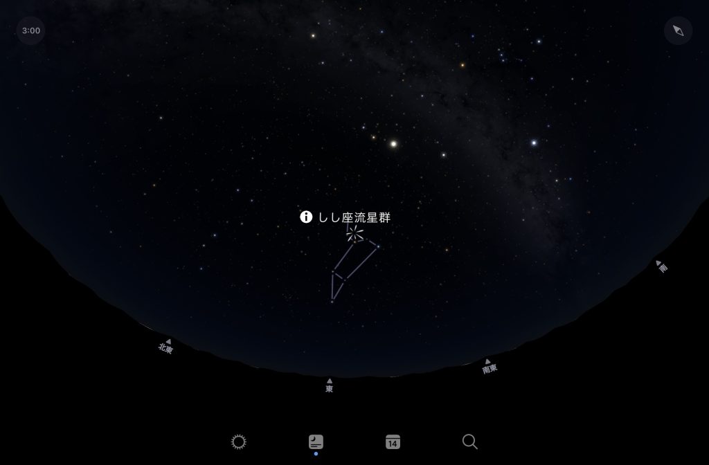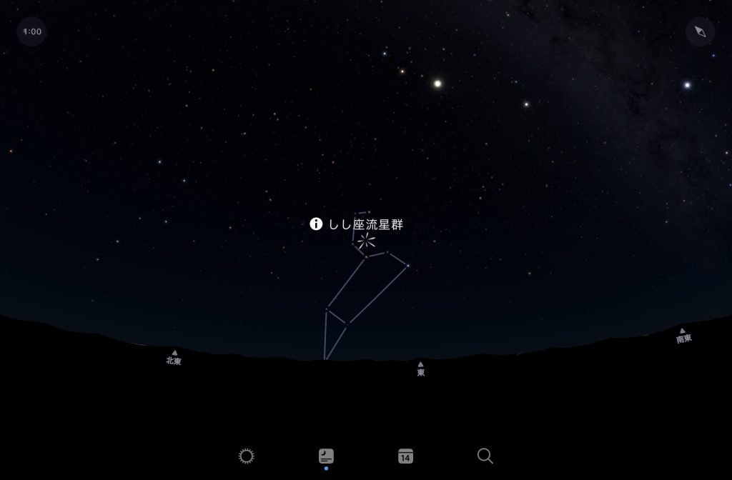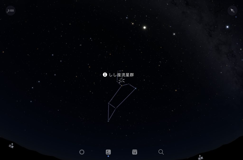 東の空45度くらいにレグルスがいると思うので、そこらへんが放射点です。