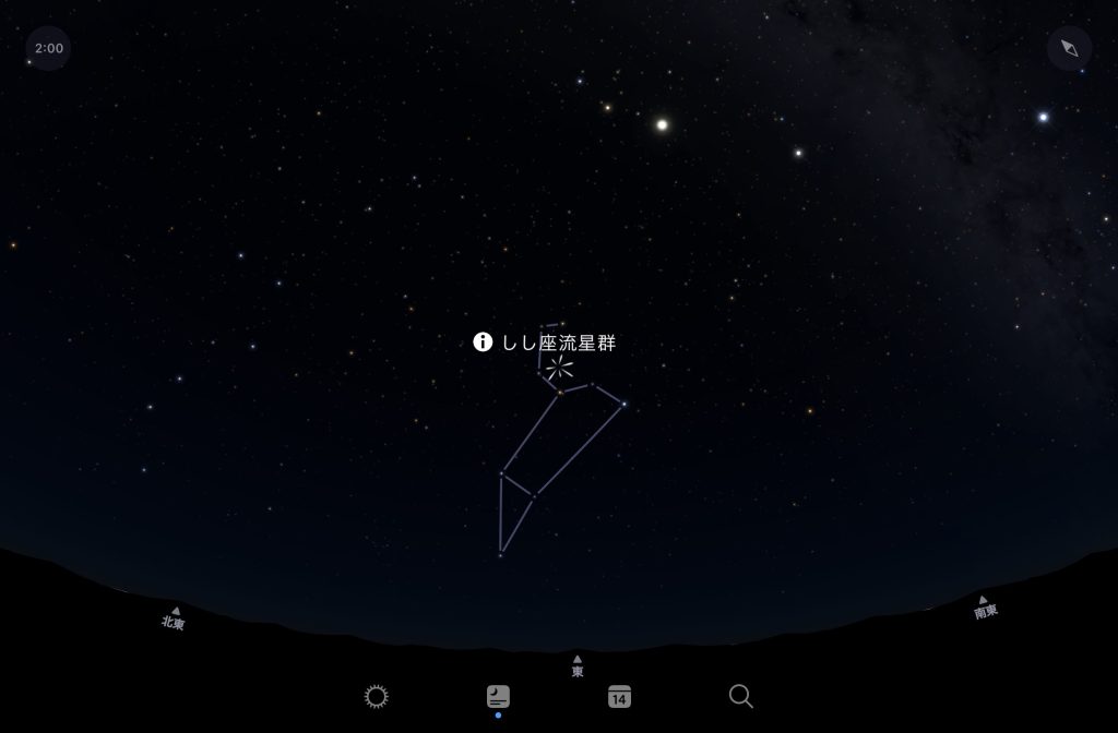 レグルスさえ見つかれば、その少し上に放射点があるはずです。