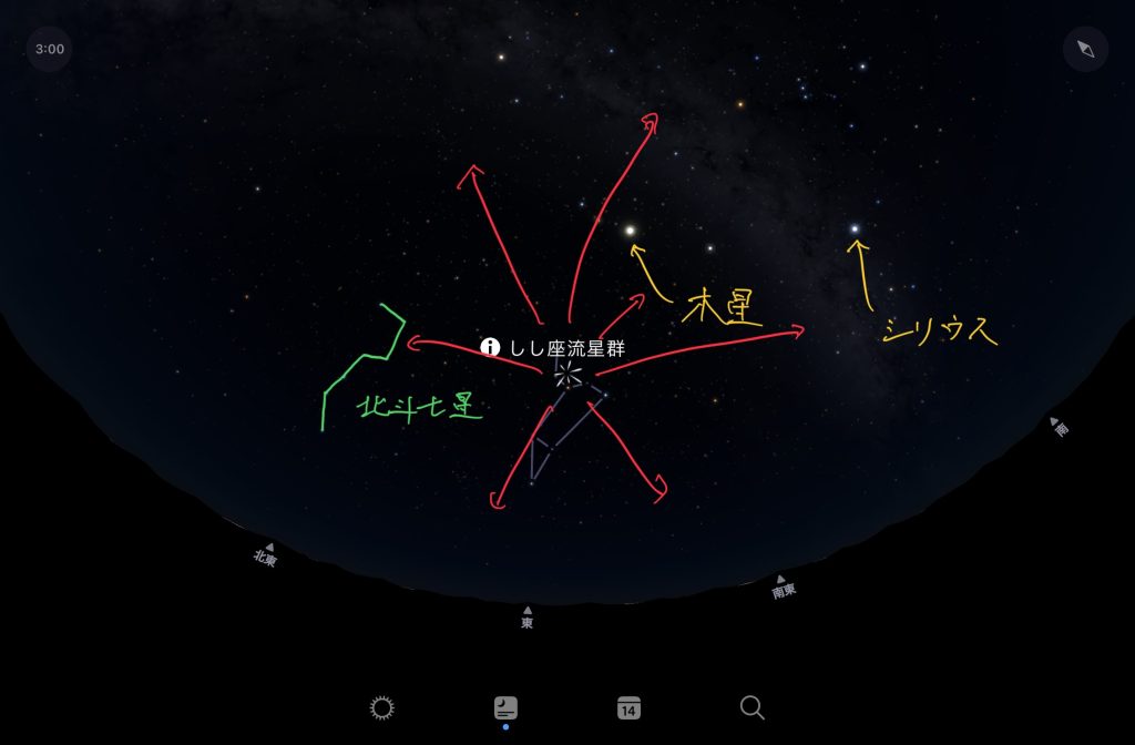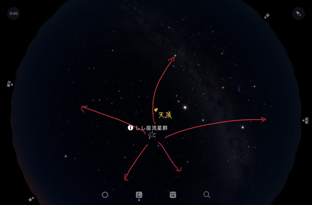 放射点といっても、あくまで流星が飛んでくるように見える場所なのでそこに流星が現れるとは限りません。
