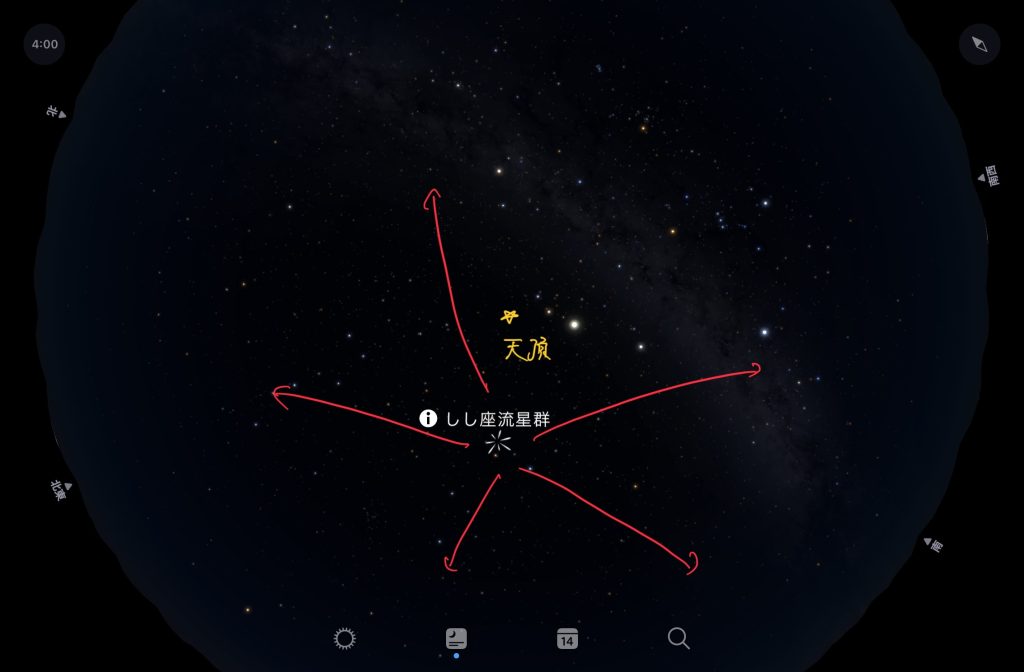 しし座を見つけることができたら、その頭がしし座流星群の放射点です。