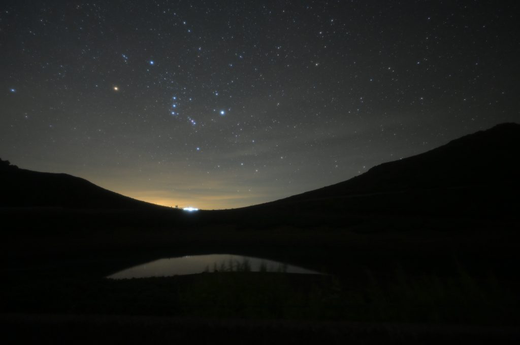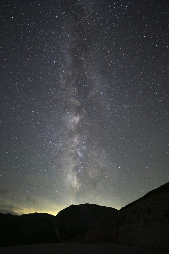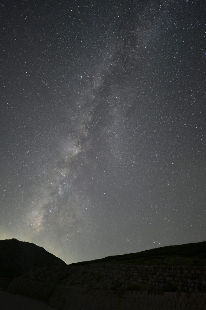 普通の星景写真なら山も明るく写るはずですが、あまりにも暗い環境なので星空のほうが明るいです。